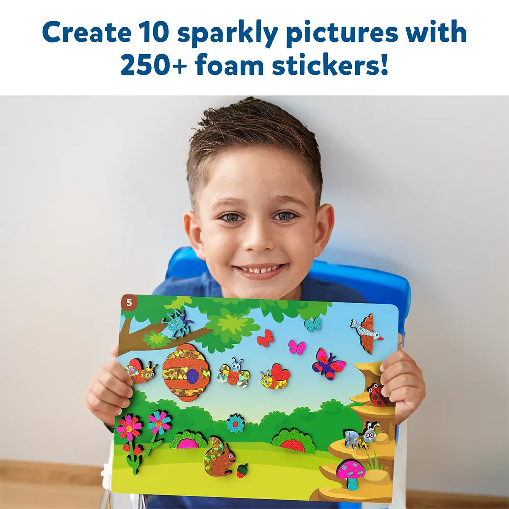 Got this for my 5-year-old and he had a blast. The shiny foil on the ladybugs looked so cool. He kept saying, “Look, Dad, it sparkles!” Great fine-motor practice too.