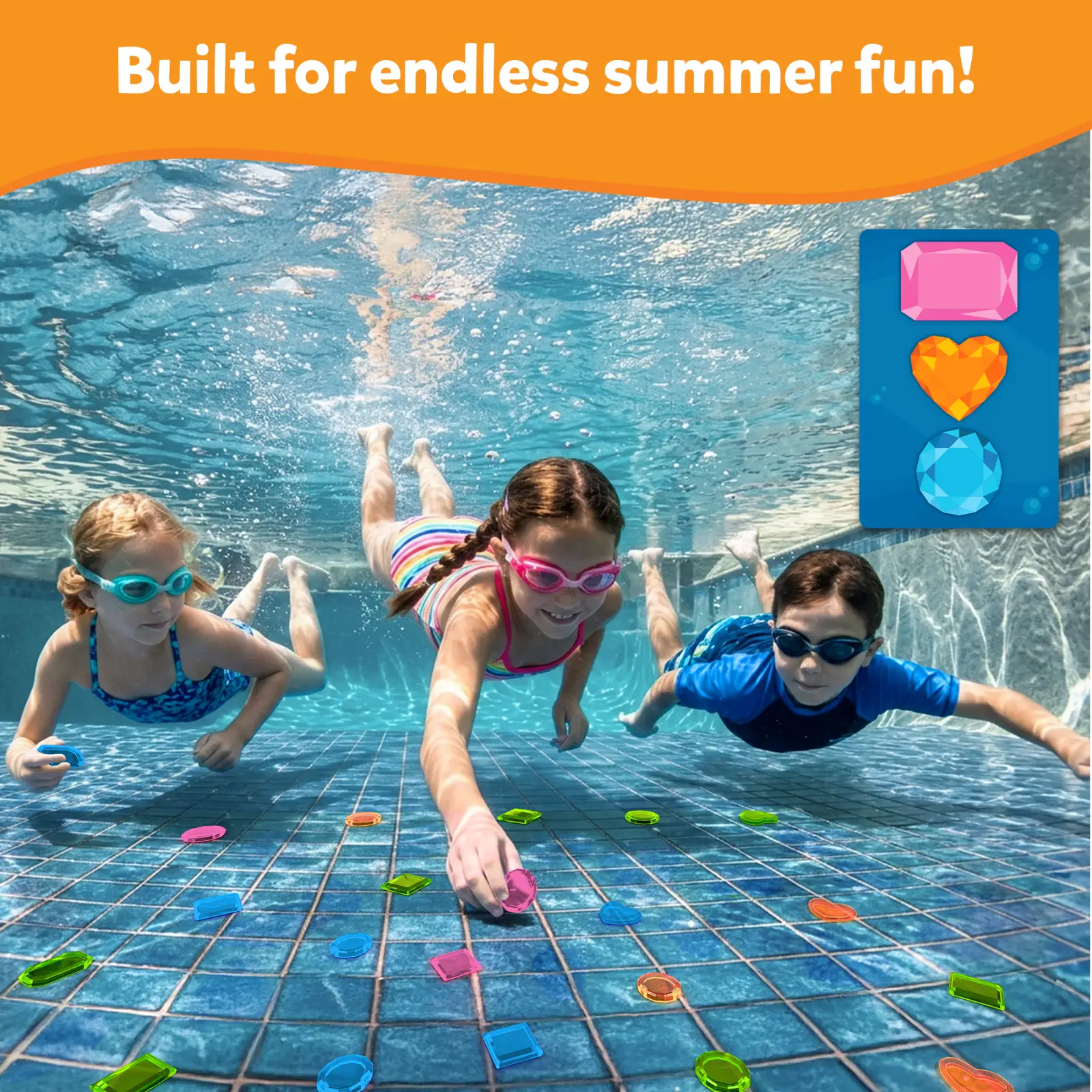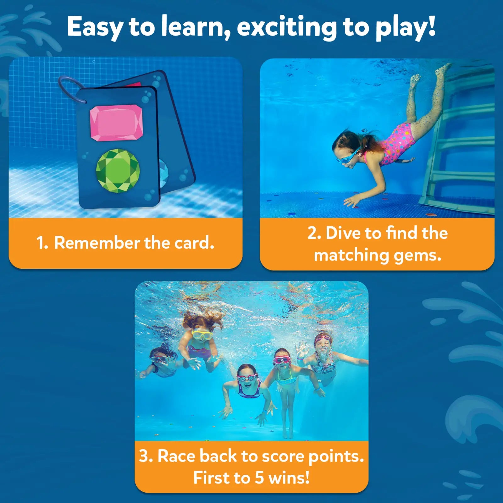 We picked this up for a neighborhood pool day and it ended up being the hit of the afternoon. My 8-year-old and 10-year-old were obsessed with diving down and racing each other back up. I love that it actually gets them practicing their swimming instead of just splashing around. The gems are bright and easy to spot underwater, and the rules are simple enough that they jumped right in without much explaining. Melissa Carter