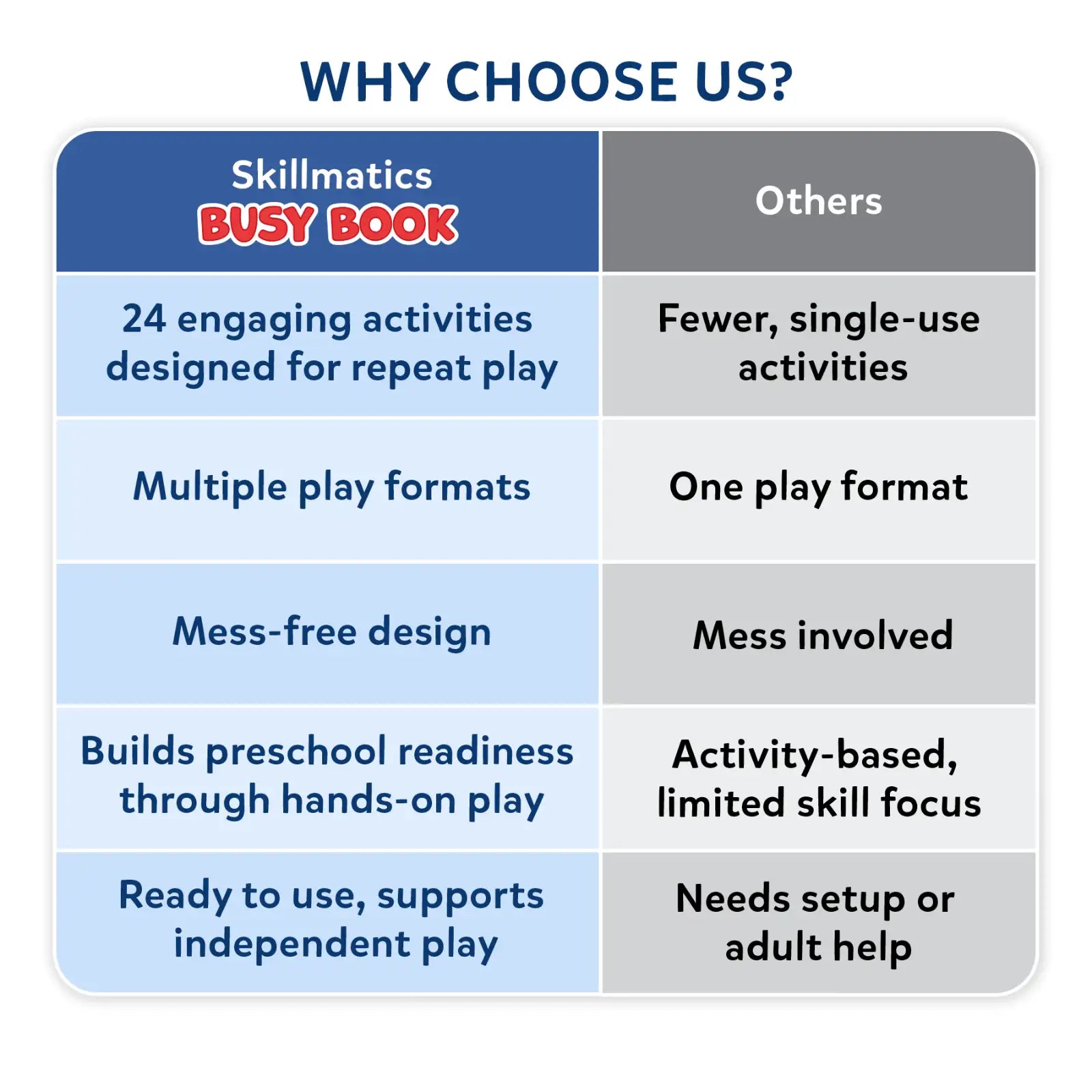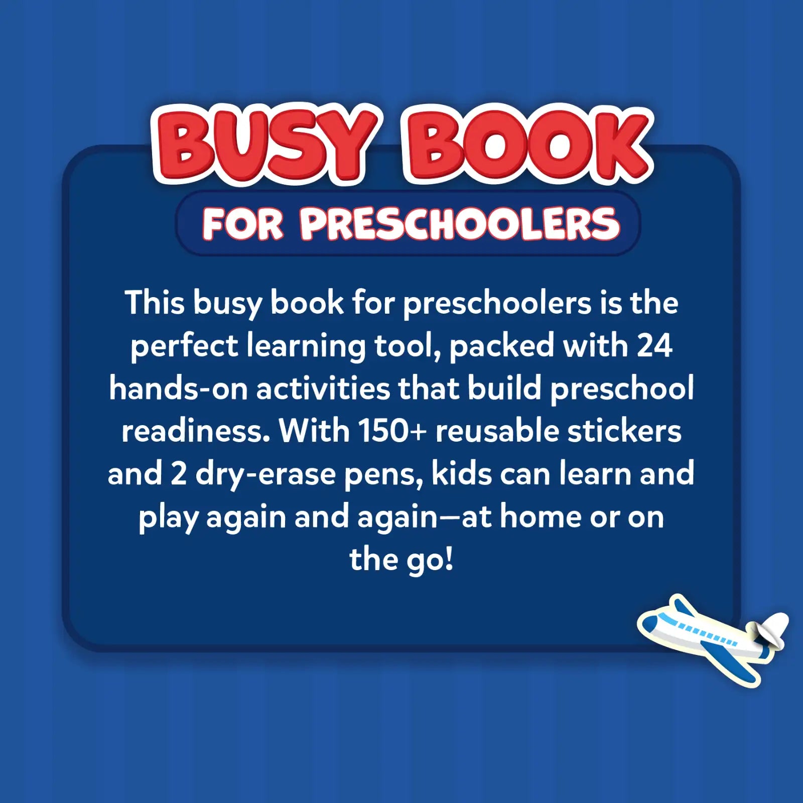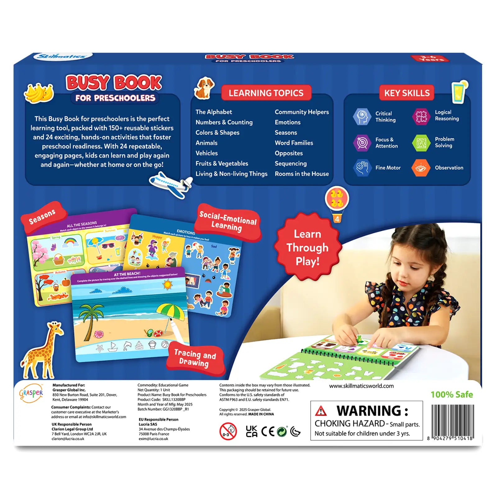 Skillmatics Busy Book is an interactive learning tool designed to build preschool readiness through hands-on play. Featuring 24 engaging activities and 150+ reusable stickers, kids can trace, match, sort, and count while exploring key early learning concepts. The reusable pages and dry-erase markers make it easy to play again and again, encouraging independent, screen-free learning at home or on the go.